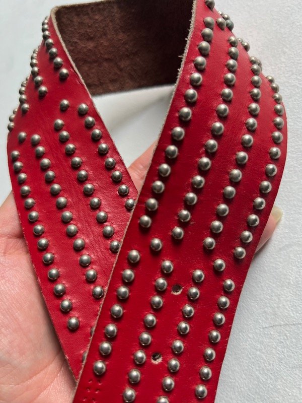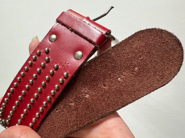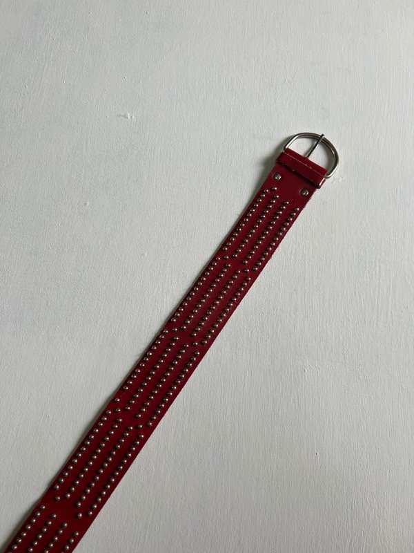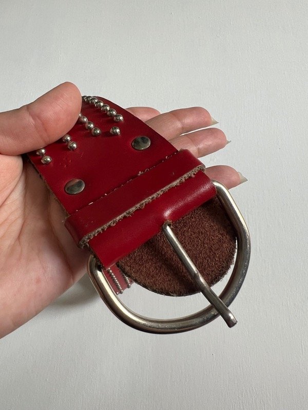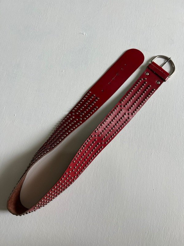 Cinturon de cuero color bordo con tachas.