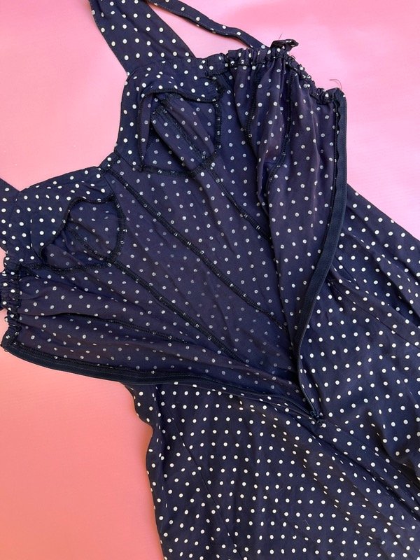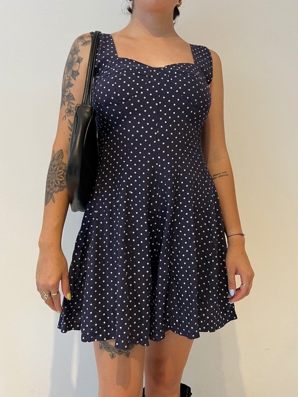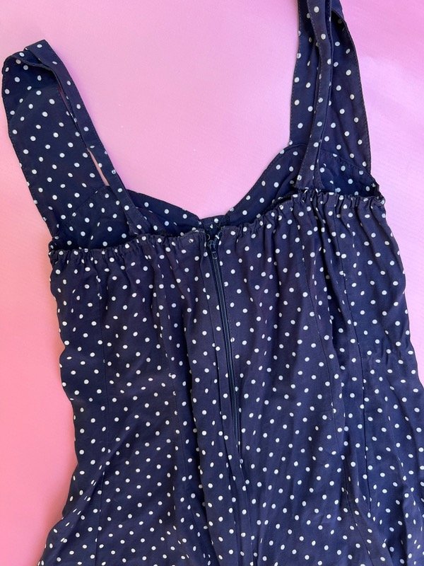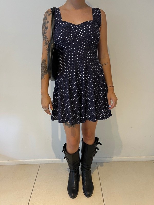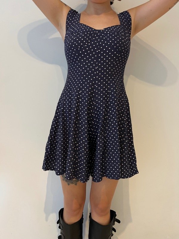 Mono de fibrana azul marino con lunares.