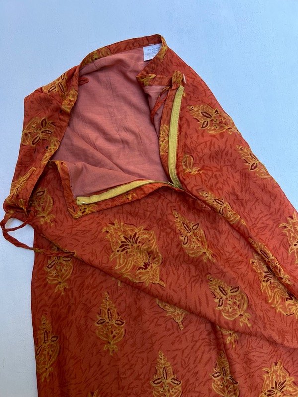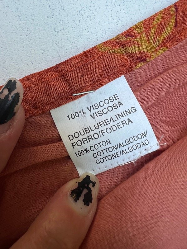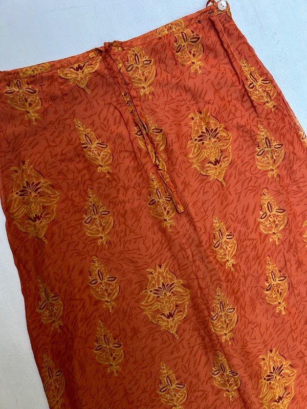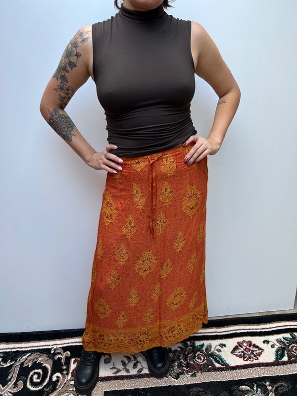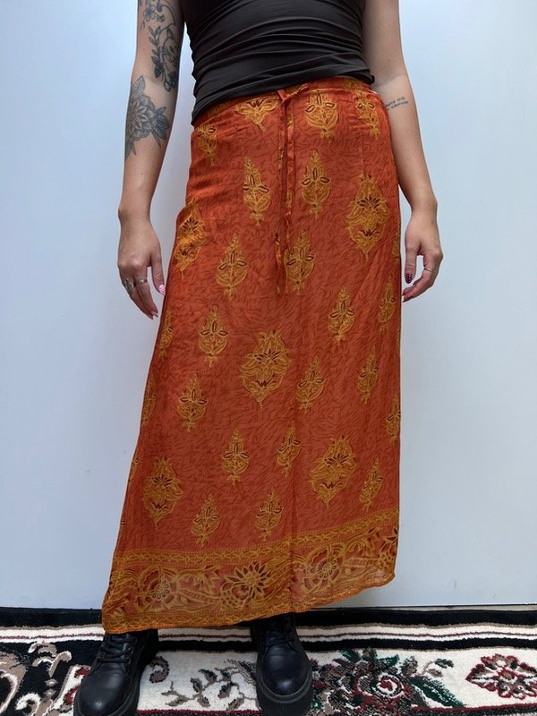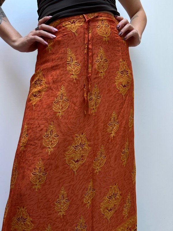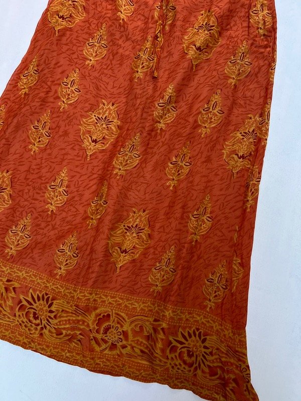 Falda larga color terracota con estampado.