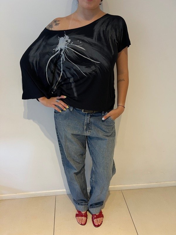 Remera de modal estilo DOLMAN, 1 hombro caido.