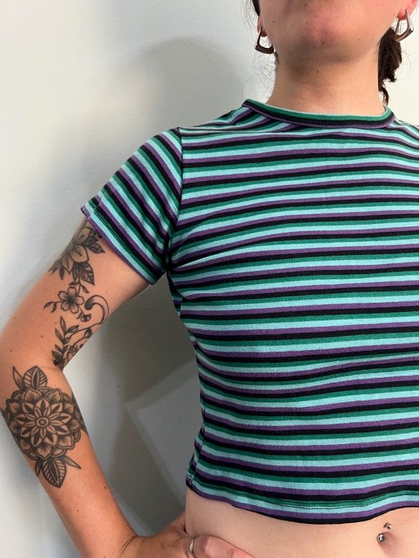 Remera crop rayada de algodón