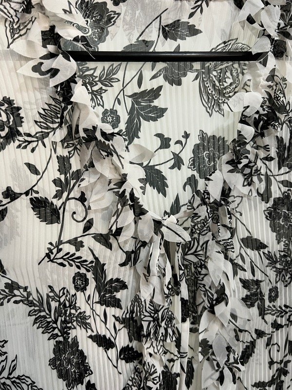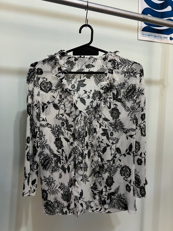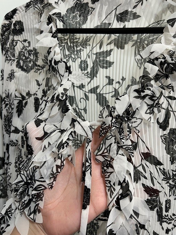 Tiene cordones al frente para atar, no botones. Mangas 3/4