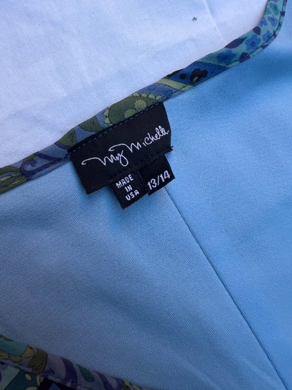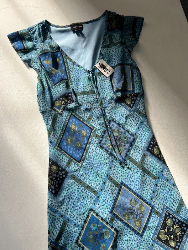 Vestido vintage de gasa y forro interno en colores turquesas con mandalas.